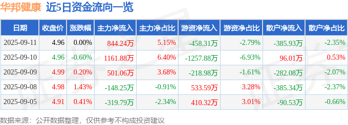 证券之星消息,截至2025年9月11日收盘,华邦健康(002004)报收于4.96元,上涨0.0%,换手率1.77%,成交量33.33万手,成交额1.64亿元。