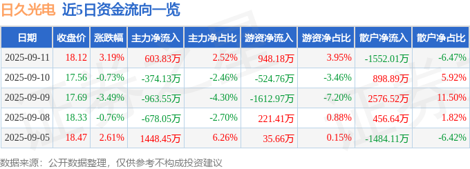 9月11日的资金流向数据方面,主力资金净流入603.83万元,占总成交额2.52%,游资资金净流入948.18万元,占总成交额3.95%,散户资金净流出1552.01万元,占总成交额6.47%。