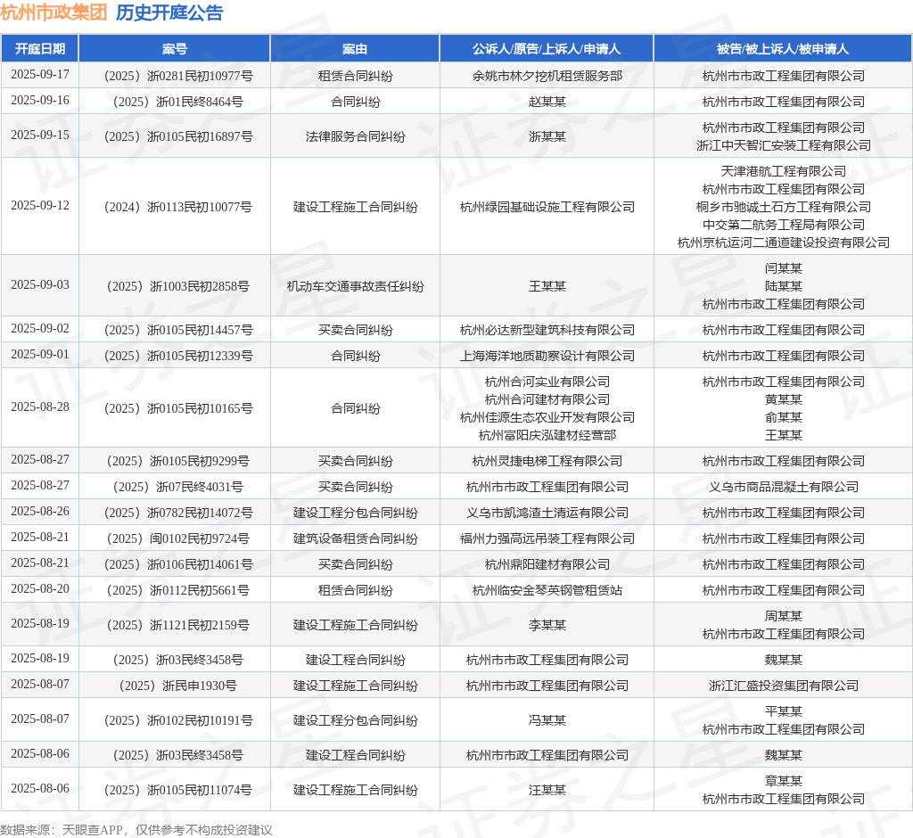 证券之星消息,根据天眼查APP显示,近日公布了一则杭州市市政工程集团有限公司作为被告/被上诉人的开庭公告,详细内容如下: