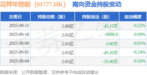 证券之星消息,9月11日南向资金减持45.15万股花样年控股(01777.HK)。近5个交易日中,获南向资金减持的有5天,累计净减持130.95万股。近20个交易日中,获南向资金减持的有20天,累计净减持387.0万股。截至目前,南向资金持有花样年控股(01777.HK)2.0亿股,占公司已发行普通股的3.46%。