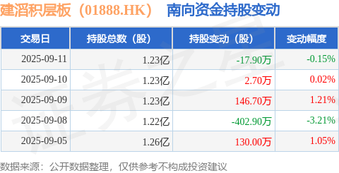 证券之星消息,9月11日南向资金减持17.9万股建滔积层板(01888.HK)。近5个交易日中,获南向资金减持的有2天,累计净减持141.4万股。近20个交易日中,获南向资金增持的有13天,累计净增持3963.95万股。截至目前,南向资金持有建滔积层板(01888.HK)1.23亿股,占公司已发行普通股的3.93%。
