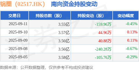 证券之星消息,9月11日南向资金减持159.96万股锅圈(02517.HK)。近5个交易日中,获南向资金减持的有3天,累计净减持420.16万股。近20个交易日中,获南向资金减持的有12天,累计净减持1826.97万股。截至目前,南向资金持有锅圈(02517.HK)3.55亿股,占公司已发行普通股的12.92%。