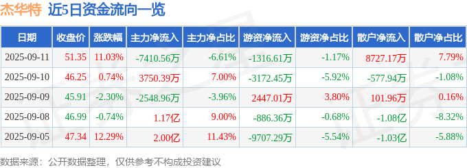 证券之星消息,截至2025年9月11日收盘,杰华特(688141)报收于51.35元,上涨11.03%,换手率8.39%,成交量22.15万手,成交额11.21亿元。