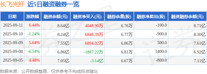 长飞光纤融资融券信息显示,融资方面,当日融资买入4.42亿元,融资偿还4.02亿元,融资净买入4048.9万元,连续3日净买入累计1.78亿元。融券方面,融券卖出0.0股,融券偿还100.0股,融券余量6.76万股,融券余额630.37万元。融资融券余额8.71亿元。