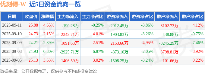 证券之星消息,截至2025年9月11日收盘,优刻得(688158)报收于25.88元,上涨4.65%,换手率7.3%,成交量29.6万手,成交额7.54亿元。