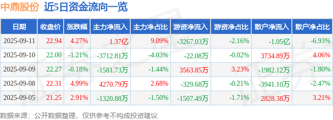 9月11日的资金流向数据方面,主力资金净流入1.37亿元,占总成交额9.09%,游资资金净流出3267.03万元,占总成交额2.16%,散户资金净流出1.05亿元,占总成交额6.93%。