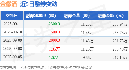 证券之星消息,9月11日,金徽酒(603919)融资买入3019.72万元,融资偿还2467.34万元,融资净买入552.39万元,融资余额1.78亿元。
