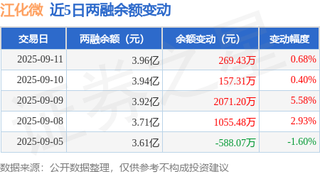 证券之星消息,9月11日,江化微(603078)融资买入6786.88万元,融资偿还6517.45万元,融资净买入269.43万元,融资余额3.96亿元,近3个交易日已连续净买入累计2497.94万元。