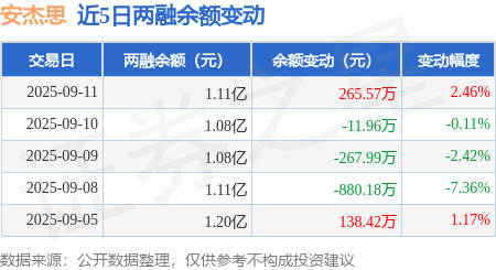 证券之星消息,9月11日,安杰思(688581)融资买入1689.74万元,融资偿还1424.17万元,融资净买入265.57万元,融资余额1.11亿元。