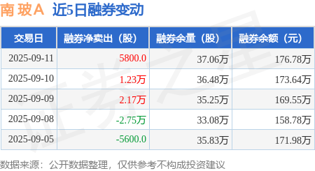 融券方面,当日融券卖出7100.0股,融券偿还1300.0股,融券净卖出5800.0股,融券余量37.06万股,近3个交易日已连续净卖出累计3.98万股,近20个交易日中有11个交易日出现融券净卖出。