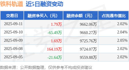 证券之星消息,9月11日,铁科轨道(688569)融资买入264.18万元,融资偿还262.39万元,融资净买入1.79万元,融资余额9662.06万元,近20个交易日中有12个交易日出现融资净买入。