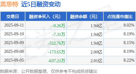 证券之星消息,9月11日,英思特(301622)融资买入1681.03万元,融资偿还1690.29万元,融资净卖出9.26万元,融资余额1.94亿元。