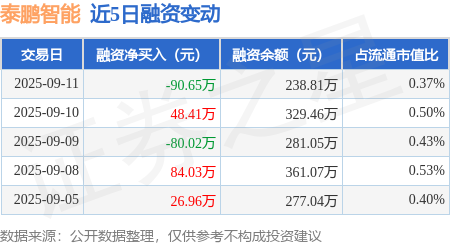 证券之星消息,9月11日,泰鹏智能(873132)融资买入14.45万元,融资偿还105.1万元,融资净卖出90.65万元,融资余额238.81万元。