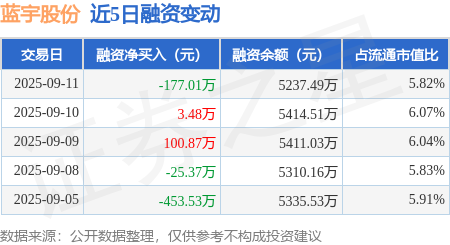 证券之星消息,9月11日,蓝宇股份(301585)融资买入381.27万元,融资偿还558.28万元,融资净卖出177.01万元,融资余额5237.49万元,近20个交易日中有12个交易日出现融资净买入。