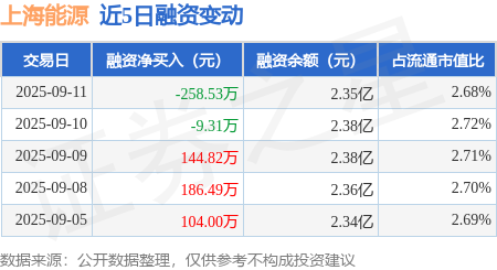 证券之星消息,9月11日,上海能源(600508)融资买入227.11万元,融资偿还485.64万元,融资净卖出258.53万元,融资余额2.35亿元。