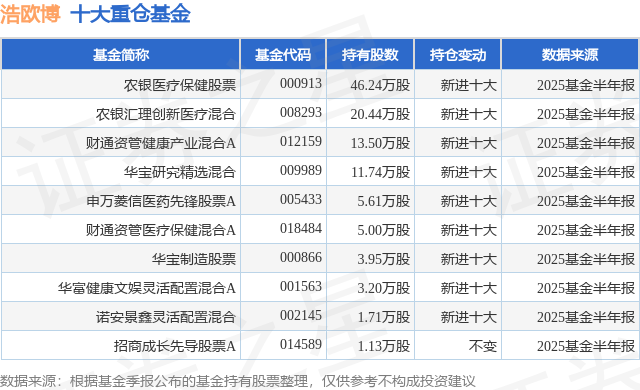 重仓浩欧博的前十大公募基金请见下表: