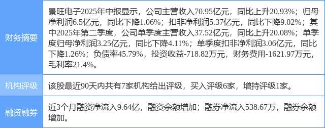 2025年8月31日,华安证券研究员陈耀波,李元晨发布了对景旺电子的研报《景旺电子:以汽车市场为基础,向AI服务器应用领域持续拓展》,该研报对景旺电子给出“买入”评级。研报中预计公司2025/2026/2027年分别实现营业收入151亿元、179亿元和211.06亿元,对比前值预期2025/2026/2027年营业收入的149亿元、174.58亿元和203.08亿元有所提升:预计归母净利润2025/2026/2027年分别实现15.88亿元、19.59亿元和23.85亿元,对比前值预期2025/2026/2027年分别实现15.86亿元、19.34亿元和23.25亿元有所提升。对应2025/2026/2027年PE分别为38X/31×/25X。维特“买入”评级。证券之星数据中心根据近三年发布的研报数据计算,该研报作者对此股的盈利预测准确度为76.58%。