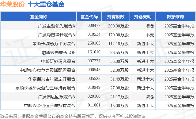 根据2025基金半年报公募基金重仓股数据,重仓该股的公募基金共19家,其中持有数量最多的公募基金为广发基金的广发主题领先混合A。广发主题领先混合A目前规模为12.9亿元,最新净值2.094(9月11日),较上一交易日上涨0.56%,近一年上涨20.52%。该公募基金现任基金经理为冯汉杰。冯汉杰在任的基金产品包括:广发均衡增长混合A,管理时间为2023年11月1日至今,期间收益率为16.29%;广发信远回报混合A,管理时间为2024年2月6日至今,期间收益率为24.71%;广发同远回报混合A,管理时间为2025年3月6日至今,期间收益率为7.56%。
