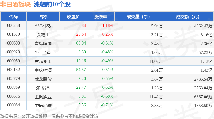 从资金流向上来看,当日非白酒板块主力资金净流出1.45亿元,游资资金净流入2266.77万元,散户资金净流入1.23亿元。非白酒板块个股资金流向见下表: