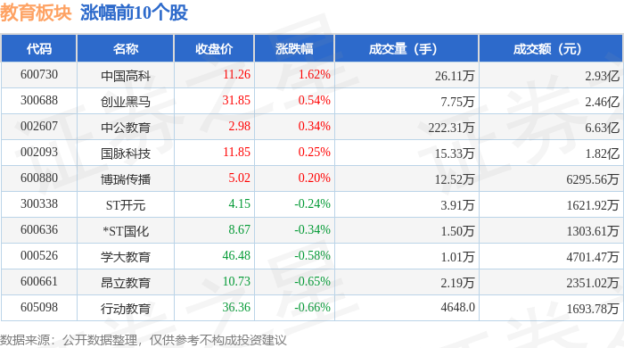 证券之星消息,9月12日教育板块较上一交易日下跌0.79%,ST东时领跌。当日上证指数报收于3883.69,上涨0.22%。深证成指报收于12996.38,上涨0.13%。教育板块个股涨跌见下表: