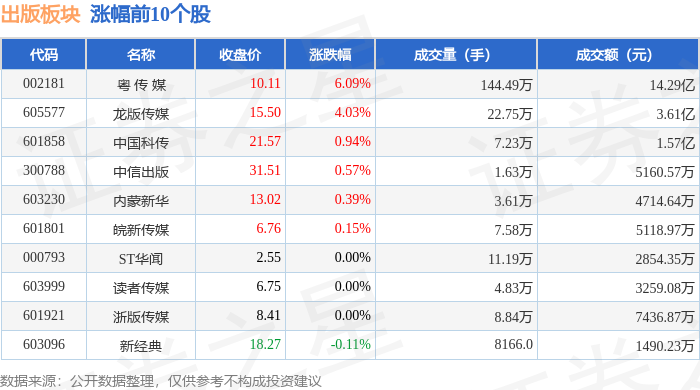 从资金流向上来看,当日出版板块主力资金净流出3.86亿元,游资资金净流入4015.26万元,散户资金净流入3.46亿元。出版板块个股资金流向见下表: