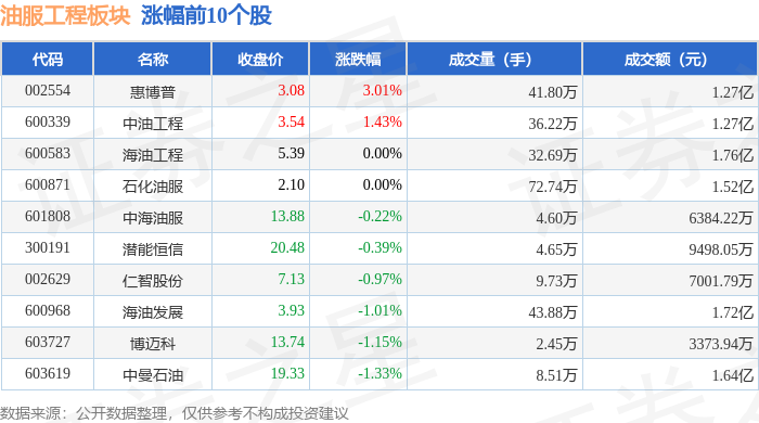 从资金流向上来看,当日油服工程板块主力资金净流出2.42亿元,游资资金净流入8718.35万元,散户资金净流入1.55亿元。油服工程板块个股资金流向见下表: