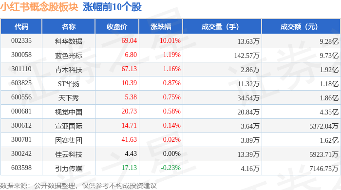 从资金流向上来看,当日小红书概念股板块主力资金净流出12.53亿元,游资资金净流出6558.55万元,散户资金净流入13.19亿元。小红书概念股板块个股资金流向见下表: