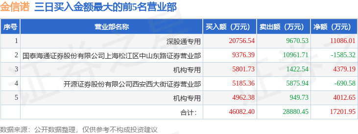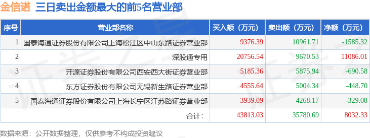 从龙虎榜公布的三日买卖数据来看,机构合计净买入8391.84万元,北向资金合计净买入1.11亿元。上海中山东路、章盟主等知名游资榜上有名。(知名游资上海中山东路一般指国泰海通证券股份有限公司上海松江区中山东路证券营业部席位、知名游资上海中山东路一般指国泰海通证券股份有限公司上海松江区中山东路证券营业部席位、知名游资章盟主一般指国泰海通证券股份有限公司上海长宁区江苏路证券营业部席位,根据市场资料整理,仅供参考)