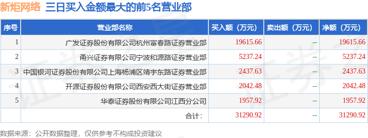 从龙虎榜公布的三日买卖数据来看,屠文斌等知名游资榜上有名。(知名游资屠文斌一般指中国银河证券股份有限公司上海杨浦区靖宇东路证券营业部席位,根据市场资料整理,仅供参考)