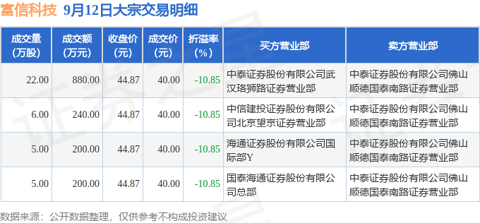 证券之星消息,9月12日富信科技发生大宗交易,交易数据如下:
