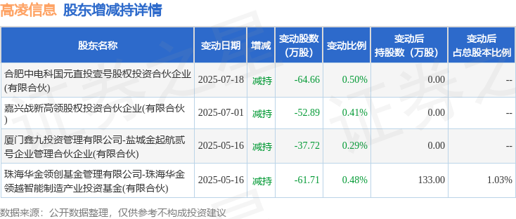 该股近半年内有股东持股变动,合计净减持216.98万股,股东增减持明细如下表: