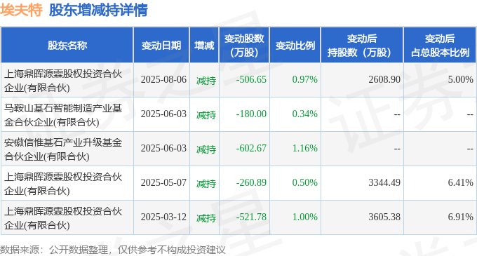 该股近半年内有股东持股变动,合计净减持2071.99万股,股东增减持明细如下表: