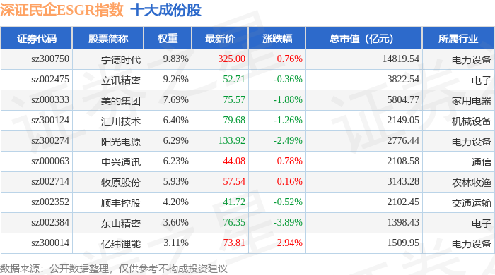 深证民企ESGR(470056)指数十大成份股详情如下: