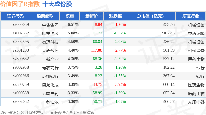 资金流向方面,价值因子R(480056)指数成份股当日主力资金净流出合计17.77亿元,游资资金净流入合计11.52亿元,散户资金净流入合计6.25亿元。成份股资金流向详情见下表:
