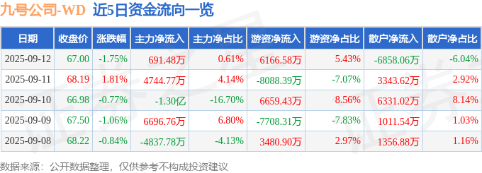 9月12日的资金流向数据方面,主力资金净流入691.48万元,占总成交额0.61%,游资资金净流入6166.58万元,占总成交额5.43%,散户资金净流出6858.06万元,占总成交额6.04%。