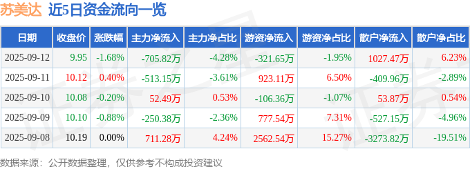 9月12日的资金流向数据方面,主力资金净流出705.82万元,占总成交额4.28%,游资资金净流出321.65万元,占总成交额1.95%,散户资金净流入1027.47万元,占总成交额6.23%。