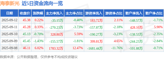 9月12日的资金流向数据方面,主力资金净流出35.15万元,占总成交额0.4%,游资资金净流入183.72万元,占总成交额2.11%,散户资金净流出148.57万元,占总成交额1.71%。