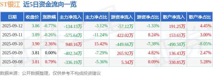 9月12日的资金流向数据方面,主力资金净流出134.13万元,占总成交额3.12%,游资资金净流出57.12万元,占总成交额1.33%,散户资金净流入191.25万元,占总成交额4.45%。