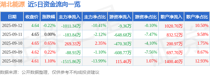 9月12日的资金流向数据方面,主力资金净流出1011.34万元,占总成交额10.41%,游资资金净流出9.36万元,占总成交额0.1%,散户资金净流入1020.7万元,占总成交额10.5%。