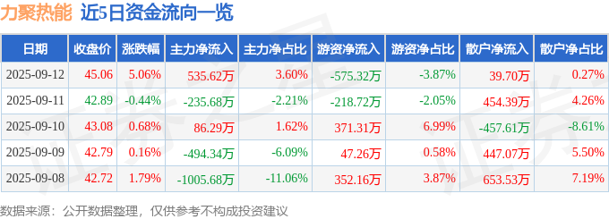 证券之星消息,截至2025年9月12日收盘,力聚热能(603391)报收于44.16元,上涨2.96%,换手率8.06%,成交量1.83万手,成交额8053.24万元。
