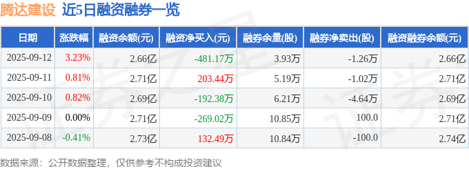 腾达建设融资融券信息显示,融资方面,当日融资买入1388.43万元,融资偿还1869.59万元,融资净偿还481.17万元。融券方面,融券卖出3.58万股,融券偿还4.84万股,融券余量3.93万股,融券余额10.06万元。融资融券余额2.66亿元。