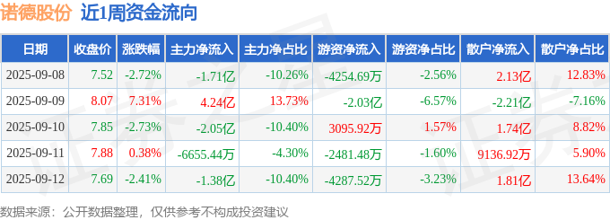 资金流向数据方面,本周诺德股份主力资金合计净流出1.55亿元,游资资金合计净流出2.82亿元,散户资金合计净流入4.38亿元。本周资金流向一览见下表: