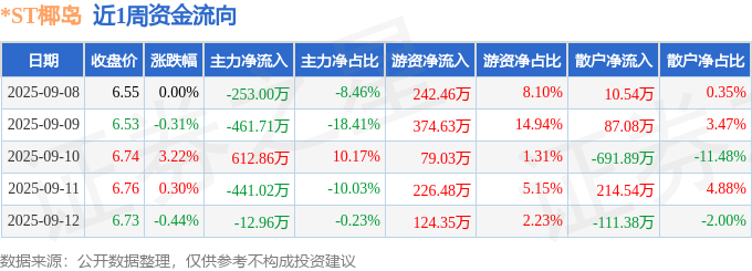 沪深股通持股方面,截止2025年9月12日收盘,*ST椰岛沪股通持股数为127.61万股,占流通股比为29.0%。