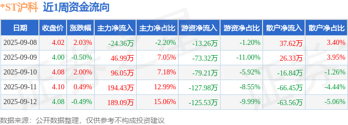 资金流向数据方面,本周*ST沪科主力资金合计净流入502.19万元,游资资金合计净流出419.29万元,散户资金合计净流出82.9万元。本周资金流向一览见下表: