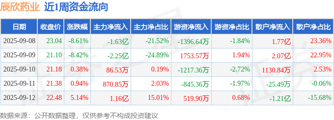 资金流向数据方面,本周辰欣药业主力资金合计净流出2.63亿元,游资资金合计净流出1185.89万元,散户资金合计净流入2.75亿元。本周资金流向一览见下表: