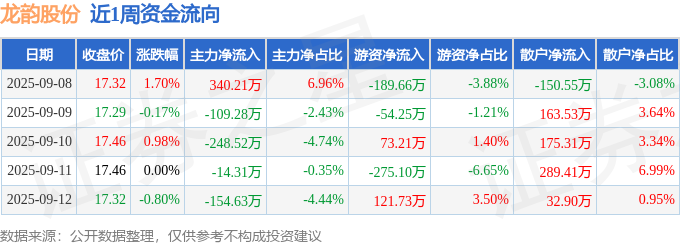 资金流向数据方面,本周龙韵股份主力资金合计净流出186.53万元,游资资金合计净流出324.06万元,散户资金合计净流入510.6万元。本周资金流向一览见下表: