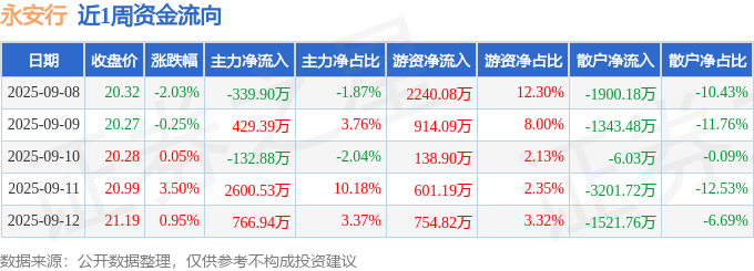 资金流向数据方面,本周永安行主力资金合计净流入3324.07万元,游资资金合计净流入4649.09万元,散户资金合计净流出7973.16万元。本周资金流向一览见下表: