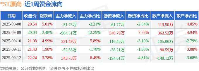 资金流向数据方面,本周*ST原尚主力资金合计净流出443.2万元,游资资金合计净流入129.78万元,散户资金合计净流入313.42万元。本周资金流向一览见下表:
