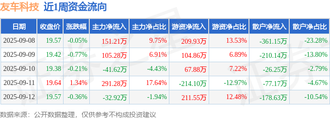 资金流向数据方面,本周友车科技主力资金合计净流入473.23万元,游资资金合计净流入380.12万元,散户资金合计净流出853.35万元。本周资金流向一览见下表: