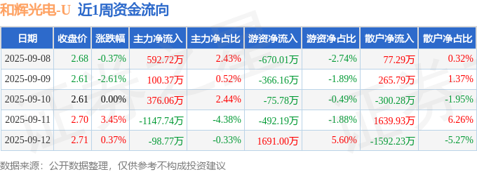 资金流向数据方面,本周和辉光电主力资金合计净流出177.37万元,游资资金合计净流入86.86万元,散户资金合计净流入90.51万元。本周资金流向一览见下表: